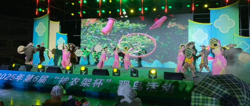 舞台上,8个极具神农架本土特色的节目依次亮相。《绿色的奇迹》似在诉说神农架的生态之美,与观鸟活动的生态主题巧妙呼应;《打起火炮唱起歌》则传递出当地人民热情奔放的性格;《客来哒泡香茶》更是将神农架人好客的传统展现得淋漓尽致。